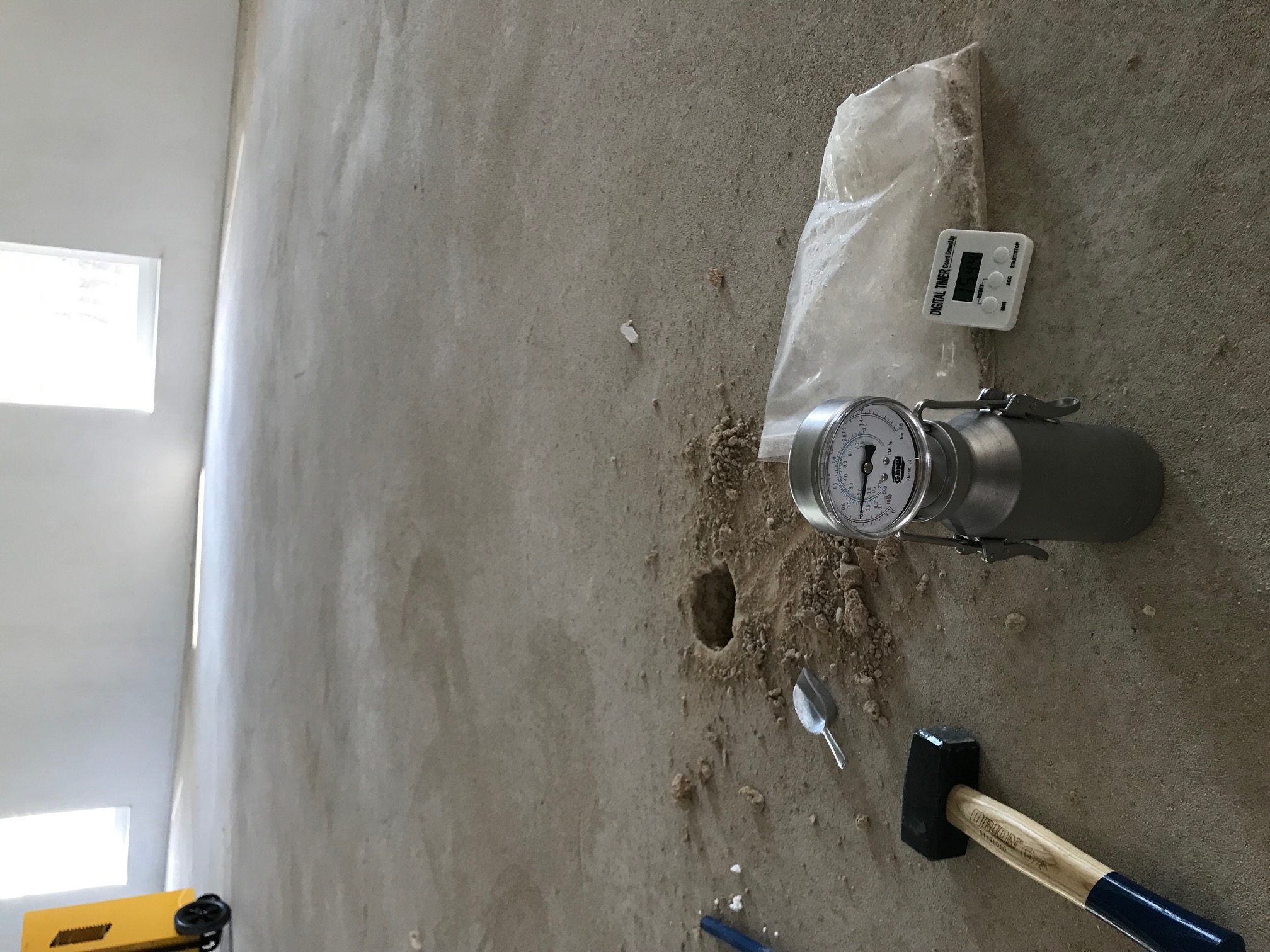 Nach einigen Wochen, meistens ungefähr 6 Wochen wird gemessen, wie feucht der Estrich ist.